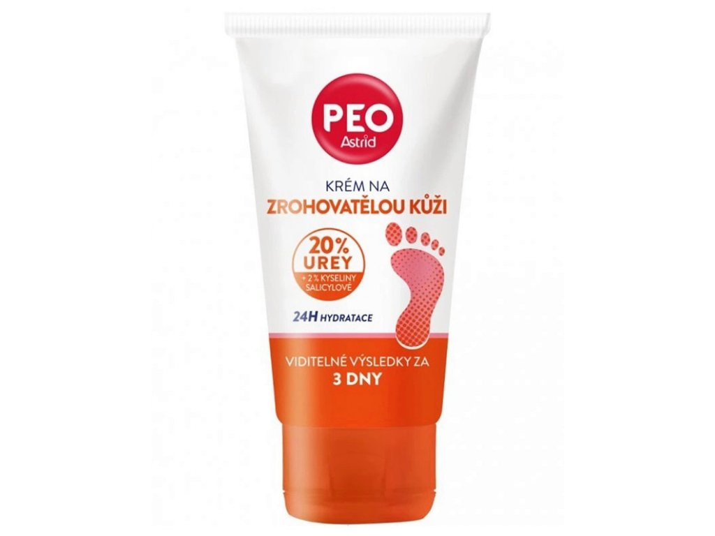 Peo Krém na zrohovatenú kožu s 20% urey má veľmi účinné zloženie pre redukciu zrohovatenej, mozoľnatej kože a veľmi suchej kože na nohách a zlepšenie jej vzhľadu.