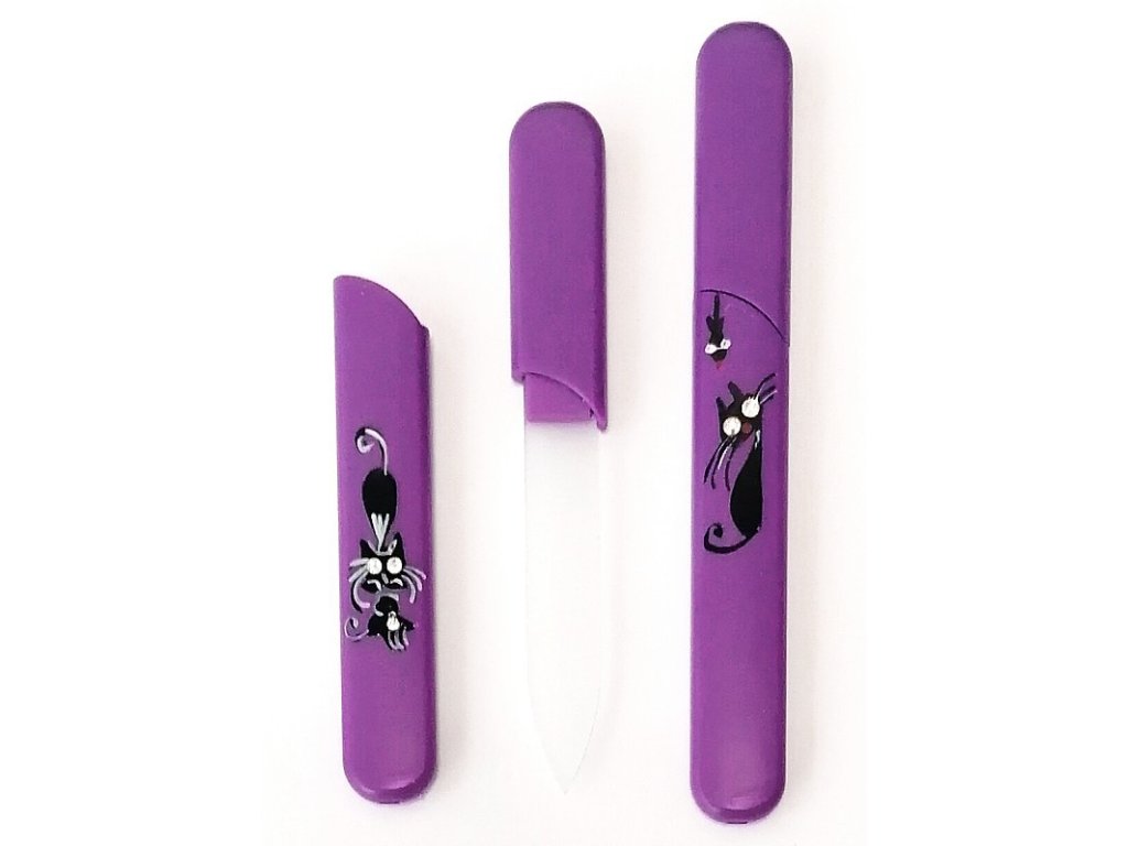 BOHEMIA CRYSTAL - Sklenený pilník s krytkou - celková dĺžka s krytkou 125mm (70mm sklo), šírka 11,5 mm, hrúbka 2mm * Rôzne vzory maľovaných obrazcov + kryštály Swarovski komponenty * Veľmi kvalitné prevedenie * Ručne dokončované * Brúsna plocha 70mm - brúsne obojstranné plochy sú leptané úplne novou technológiou, ktorá zaisťuje jedinečnosť medzi výrobcami a maximálnu ostrosť * Samotná brúsna plocha je nezničiteľná * Mechanická pevnosť - pri bežnom používaní nepraskne a je odolná voči pádu na zmäkčené povrchy - lino, koberec. Po dopade na tvrdé predmety ako kameň, dlaždicu alebo betón dôjde samozrejme k jej mechanickému poškodeniu * Údržba - po použití pilník opláchnite prúdom vody. Pri väčšom znečistení môžete použiť kefku a saponát. Možno ho tiež vyvariť, sterilizovať alebo dezinfikovať * Kvalita, pevnosť odolnosť a funkčnosť pilníka bola testovaná a schválená autorizovanou skúšobňou *