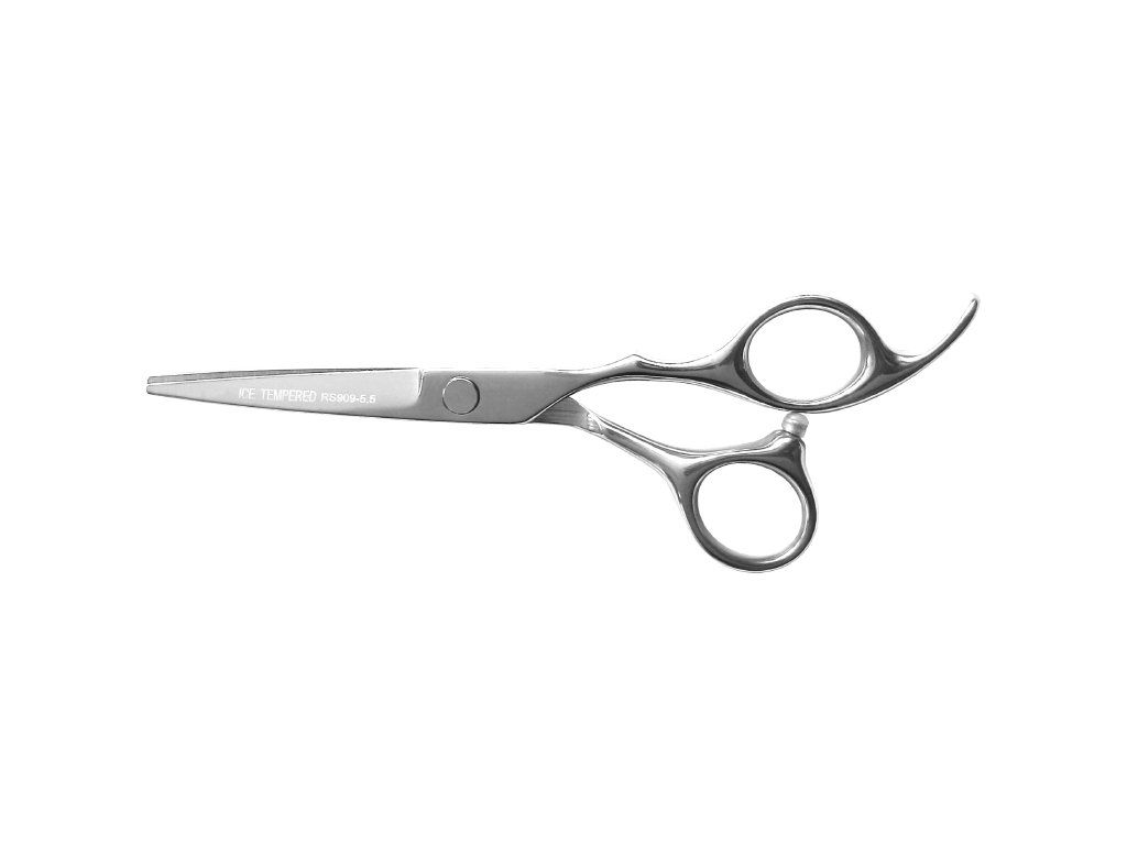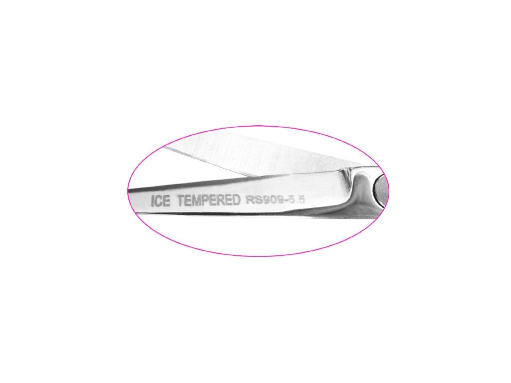 Profesionálne kadernícke nožnice na vlasy - dĺžka 5,5" 14,5 cm. Nožnice sú vyrobené z nehrdzavejúcej ocele 9CR18 a pre získanie maximálnej tvrdosti a hoževnatosti sú zakalené technológiou ICE kedy je oceľ zahriata na 1 -120°C. Brity sú konkávne vybrúsené pre dokonalú ostrosť. Ergonomicky tvarované Semi offset držiak, pre pohodlné držanie. Zmäkčený chod nožníc vďaka špeciálnej flexibilnej zostave v kĺbe. Nastaviteľný chod nožníc plochou skrutkou, zapustenou do tela nožníc. Opierka na malíček.