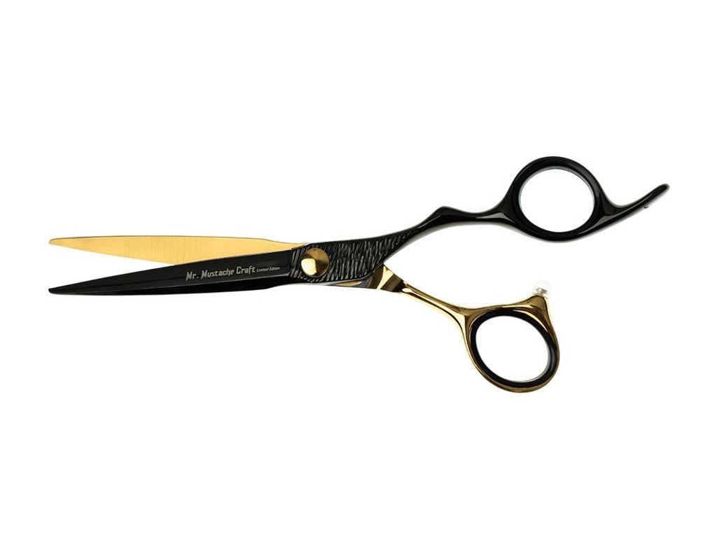 Kadernícke nožnice MR. MUSTACHE Craft Black-Gold – nástroj pre skutočných majstrov remesla. Precíznosť, sila a štýl v každom strihu.