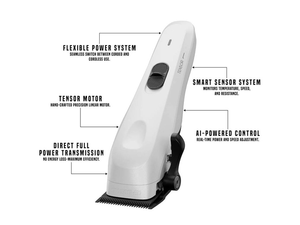 MY-BLADES Tensor 1 je prvý profesionálny AI strojček na vlasy, ktorý doslova premýšľa, zatiaľ čo strihá. Je poháňaný AI Tensor motorom – vôbec prvým svojho druhu – ktorý ženie čepeľ až na 26 000 otáčok za minútu. Žiadne prevody, žiadne straty výkonu. Len čistá sila, presnosť a úplne plynulý ťah.