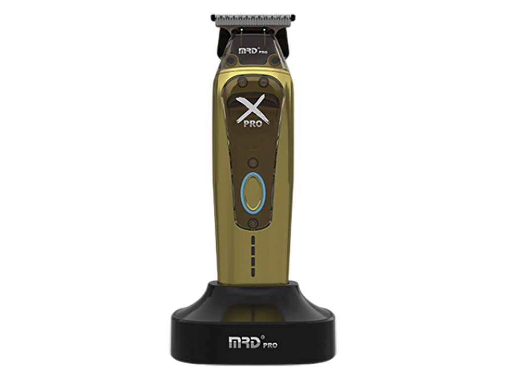 Prémiový kontúrovací strojček MRD Pro X-Pro trimmer Gold s revolučným vektorovým motorom, až 13000 ot. / min., precízne (zero-gap ready) DLC čepeľou z japonskej ocele. Stabilný výkon aj pri odpore, tichý chod a extrémna presnosť robia z X-Pro trimmera ideálny nástroj pre dokonalé kontúry.