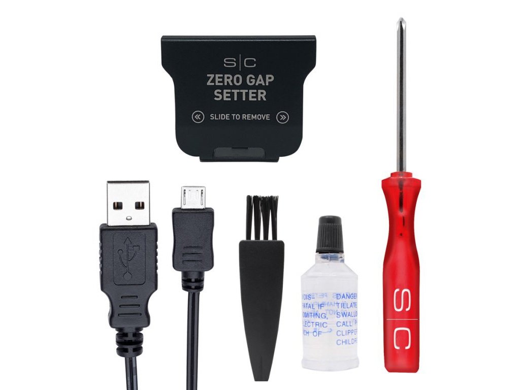 Príslušenstvo: 3 kryty (čierny, červený, modrý), nabíjací stojan, nabíjací kábel, micro USB kábel, súprava na čistenie/údržbu, praktický mini skrutkovač na reguláciu ostria a vlastné úpravy tela, univerzálne príslušenstvo na nastavenie čepele, krytka čepele