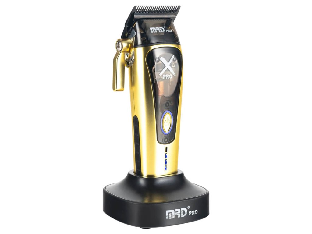 Prémiový strihací strojček na vlasy MRD Pro X-Pro clipper Gold s revolučným vektorovým motorom, až 13000 ot. / min. a precízne DLC čepeľou z japonskej ocele s nastaviteľnou výškou strihu od 0,3 do 4 mm. Silný, tichý, presný a ideálny pre moderné barber shopy aj náročných profesionálov.