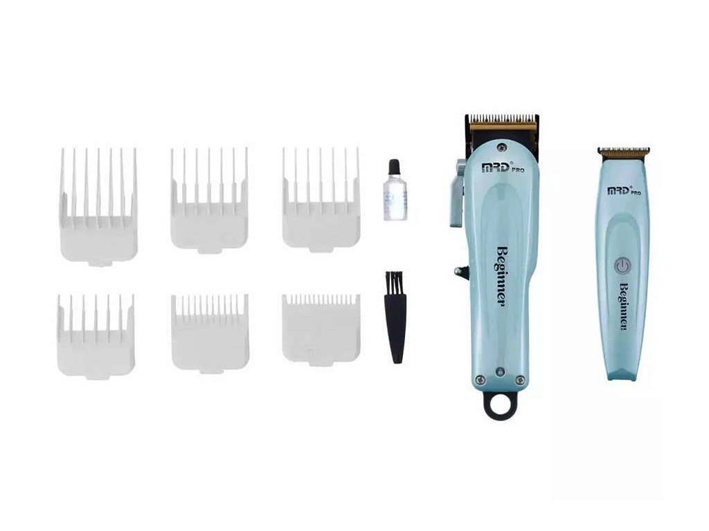 Sada strihacieho a kontúrovacieho strojčeka MRD Pro Beginner set Blue v elegantnej svetlo modrej farbe je ideálna štartovná výbava pre začínajúcich kaderníkov či barber študentov, ale aj pokročilých holičov, ktorí chcú kvalitný set strojčekov v skvelom pomere cena/výkon.