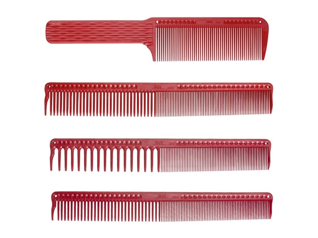 Set barber hrebeňov JRL Barber comb set obsahuje 4 kvalitne spracované hrebene v červenej farbe vhodné na profesionálne použitie v barber shope či kaderníctve. Hrebene sú vyrobené z kvalitného, ľahko ohybného, ale pevného plastu s tepelnou odolnosťou až 240 °C. Navrhnuté so špeciálnymi vzormi a tvarom, ktoré poskytujú štylistom neuveriteľnú kontrolu pri každom ťahu. Majú patentovaný vrúbkovaný dizajn zubov, ktorý pomáha zdvihnúť vlasy. Zakončenie zubov hrebeňov je okrúhle, takže sú pohodlné pri kontakte s pokožkou hlavy. Hrebene JRL sú vyrobené keramickou technológiou, takže skvele eliminujú statickú elektrinu, urýchľujú proces schnutia a vytvárajú elegantný, lesklý výsledok.
