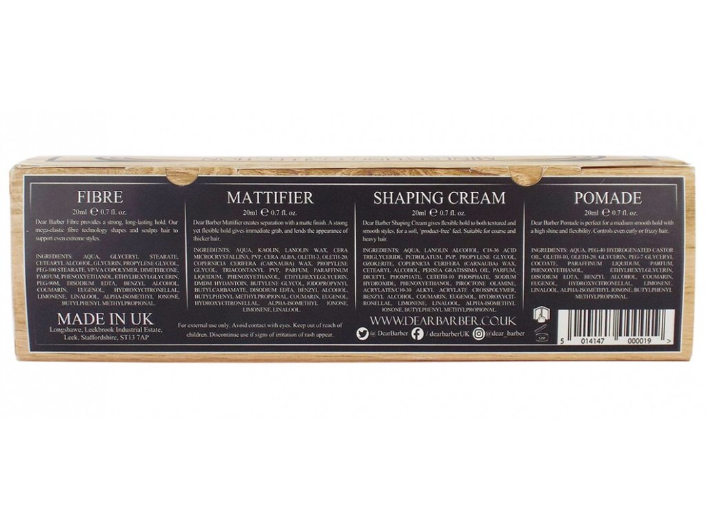 Táto darčeková mini kolekcia vlasových stylingov DEAR BARBER obsahuje nasledujúce produkty: