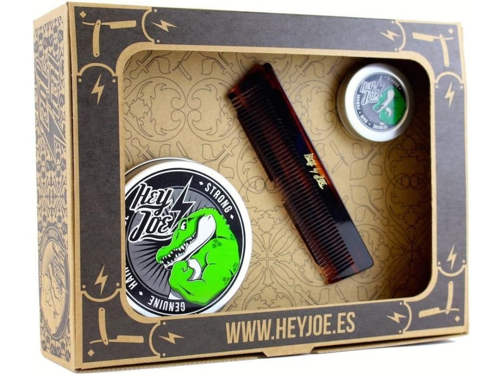 Darčeková sada na vlasy od svetoznámeho španielskeho výrobcu HEY JOE obsahuje silne tužiacu pomádu v 100 ml aj cestovnom balení a skladací vreckový hrebeň. Dodávané v darčekovej krabičke.