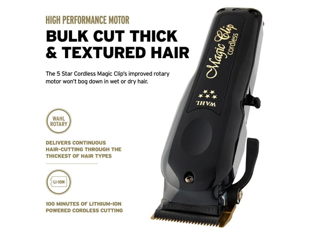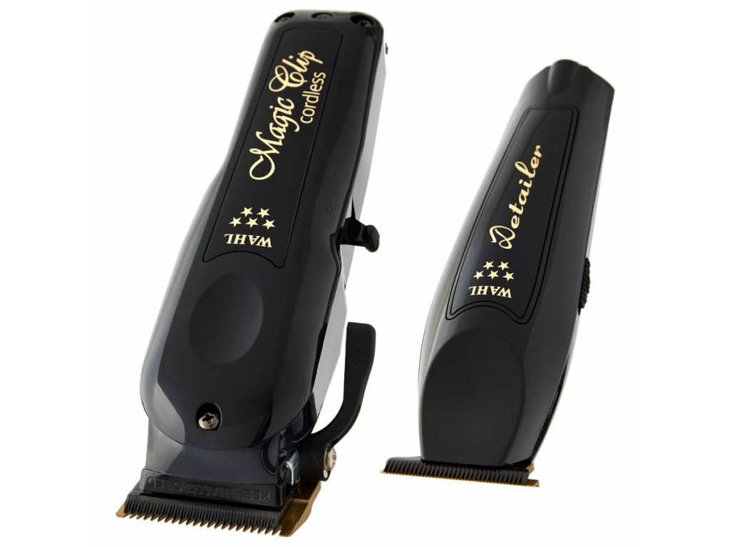 Limitovaná edícia značky WAHL 5-Star Cordless Barber Combo v podobe prémiových bezdrôtových strojčekov Magic Clip Clipper a Detailer Trimmer v elegantnej čiernej farbe. Strihací strojček Magic Clip aj kontúrovací strojček Detailer sú vylepšené oproti svojim základným verziám.