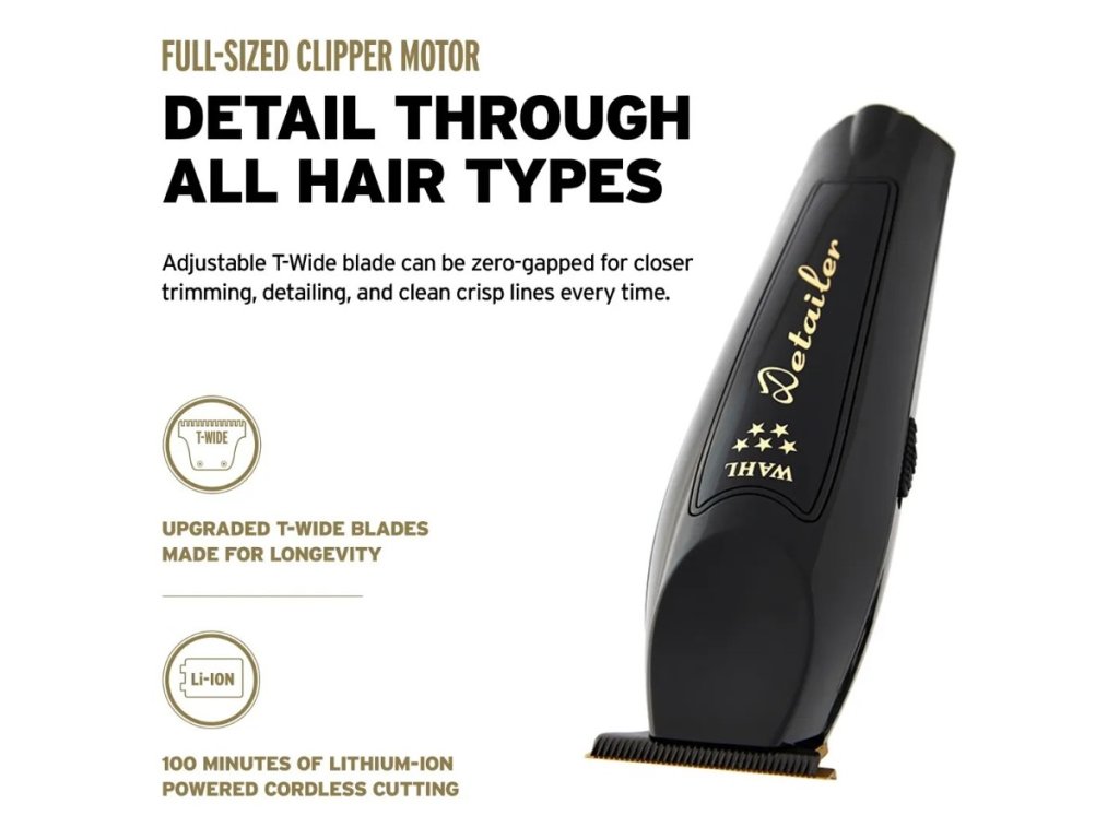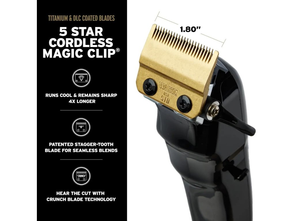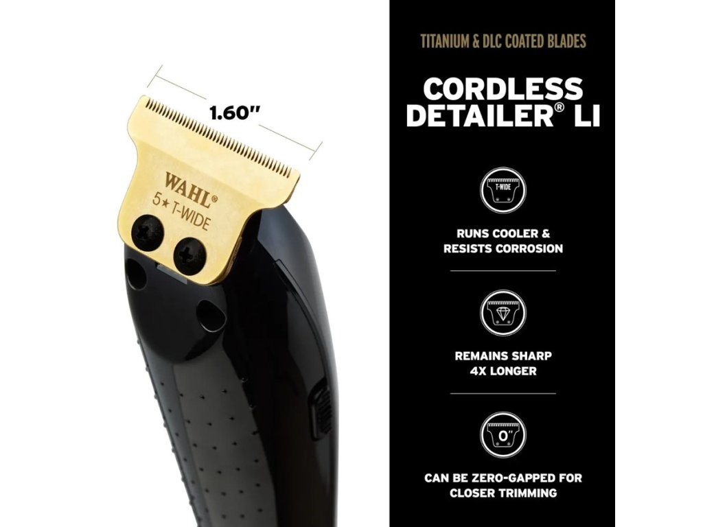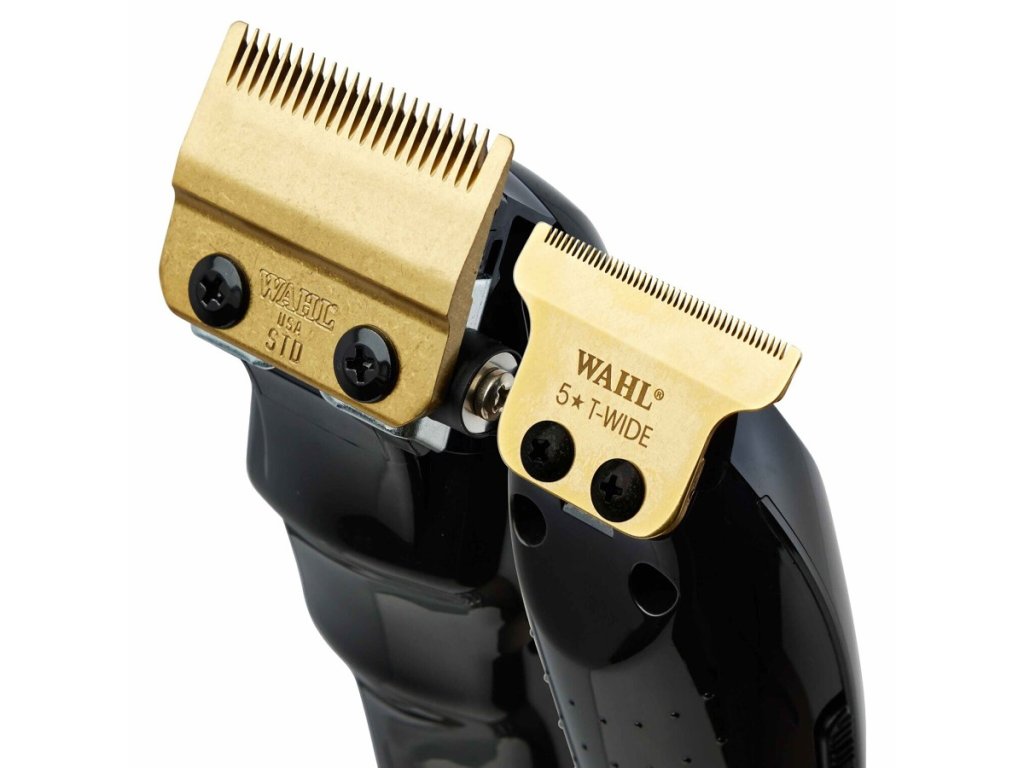 Sada strihacieho a kontúrovacieho strojčeka WAHL Magic & Detailer cordless Black Barber Combo prináša to najlepšie z obľúbených strojčekov od americkej spoločnosti WAHL radu 5 Star. V tomto prémiovom balení sa nachádza strihací strojček Wahl Cordless Magic Clip a Wahl Cordless Detailer Li v elegantnom čiernom prevedení s vylepšenými zlatými strihacími hlavicami. Strihací strojček Magic Clip je osadený vysoko presnou čepeľou Stagger-Tooth™ pre bezchybné prechody a splynutie strihu, zatiaľ čo kontúrovací strojček Detailer Li® je vybavený nastaviteľnou čepeľou T-Wide pre extrémne presné strihy. Obe čepele sú vyrobené z vysoko uhlíkovej ocele a novo opatrené povrchom z titánu a DLC, vďaka čomu sú odolné proti korózii, majú nižšiu teplotu pri dlhšej prevádzke a sú extrémne pevné.