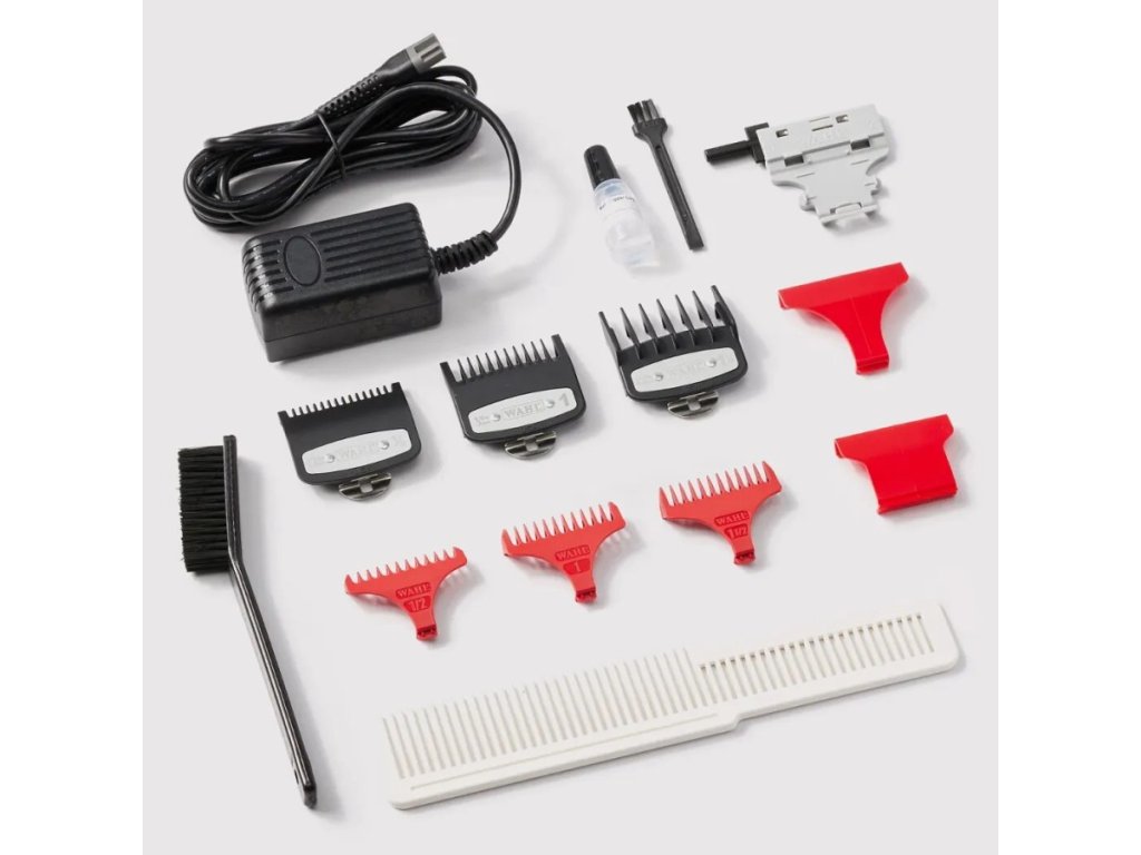 príslušenstvo: 3 prémiové plastové prídavné hrebene zosilnené kovovou sponou (1,5 mm, 3 mm a 4.5 mm) čistiaca kefka, olej, plochý strihací hrebeň, sieťový transformátor, obal - taška na strojčeky