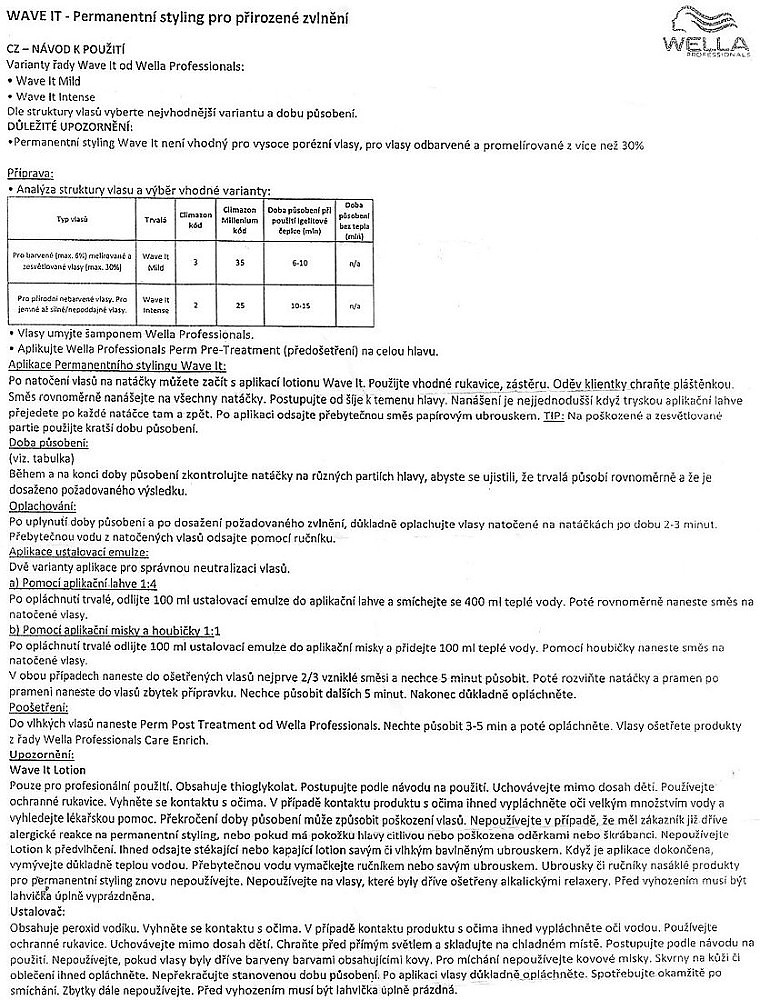 ustaľovač neutralizér k trvalým ondulacím Wave It * Miešací pomer s vodou 1: 1 alebo 1: 4 podľa spôsobu aplikácie * Wella Professionals Curl & amp; Wave je neutralizér s novou technológiou Flexi Protect pre trvalú onduláciu, ktorý dodáva dlhodobý efekt fixácie. Vytvára kučery a vlny a zároveň znižuje poškodenie vlasov. Zabraňuje krepovateniu a vlasy sú vo výsledku hebkejšie a uhladené. Neutralizér je určený pre všetky produkty Wella Professionals Wave Perm a Curl Perm.